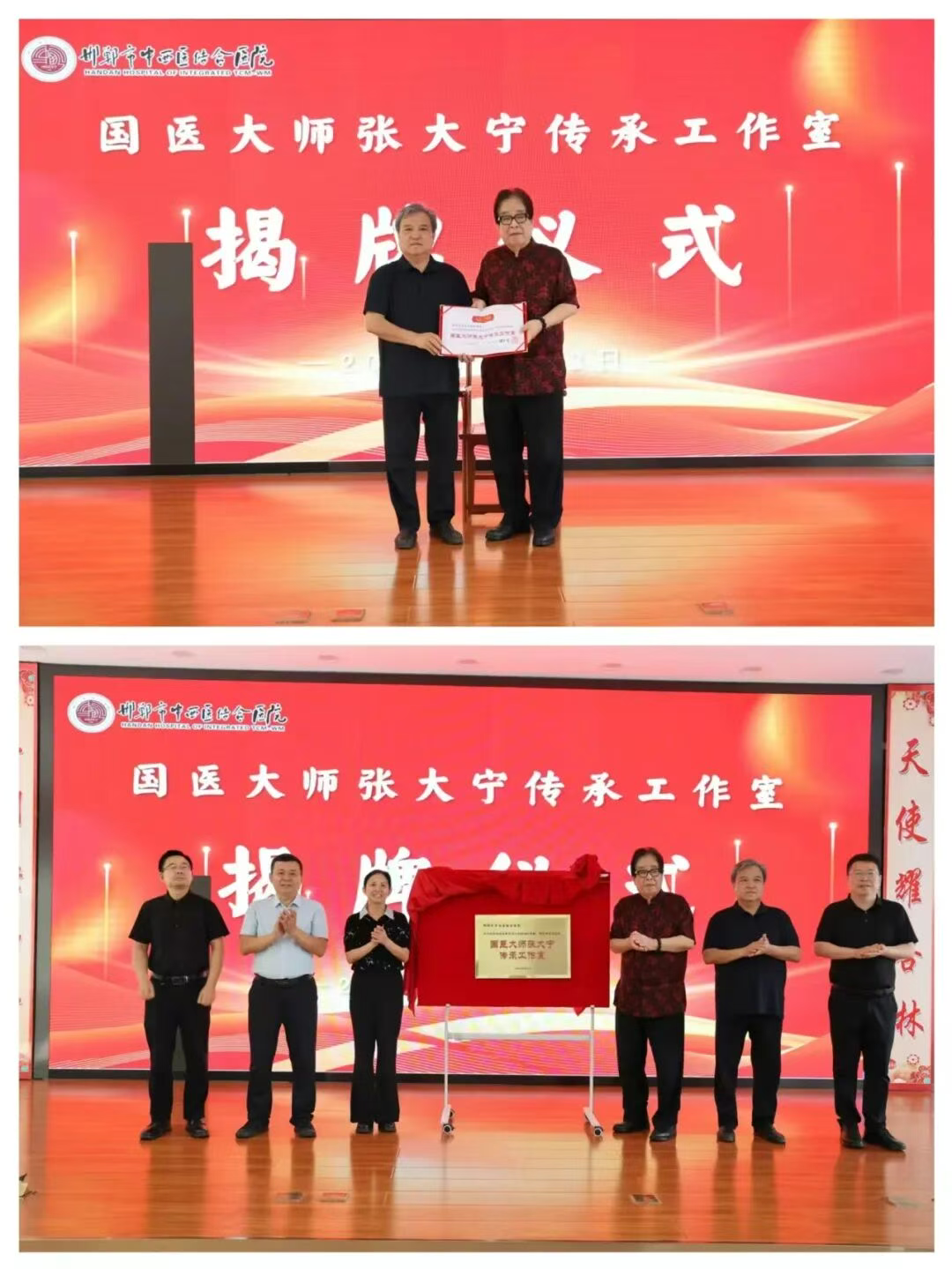 9月13日上午,国医大师张大宁传承工作室揭牌暨拜师仪式在邯郸市中西医结合医院举行。国医大师张大宁、中国药文化研究会副会长高良稳、市卫健委主任李小静,以及医院党委书记井永法、院长宋利宏等领导和医护代表出席,仪式由宋利宏主持。