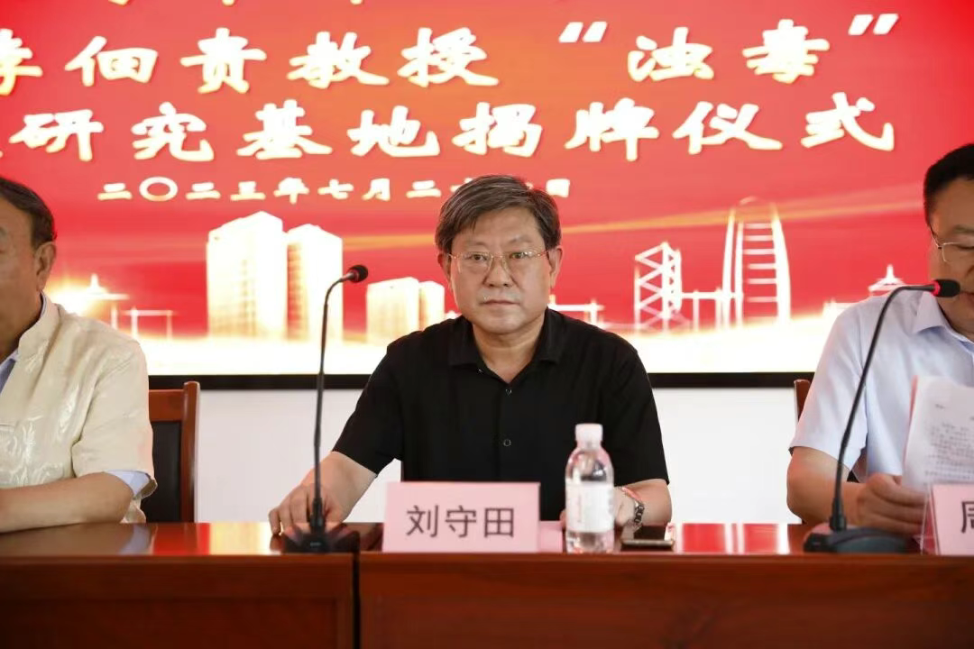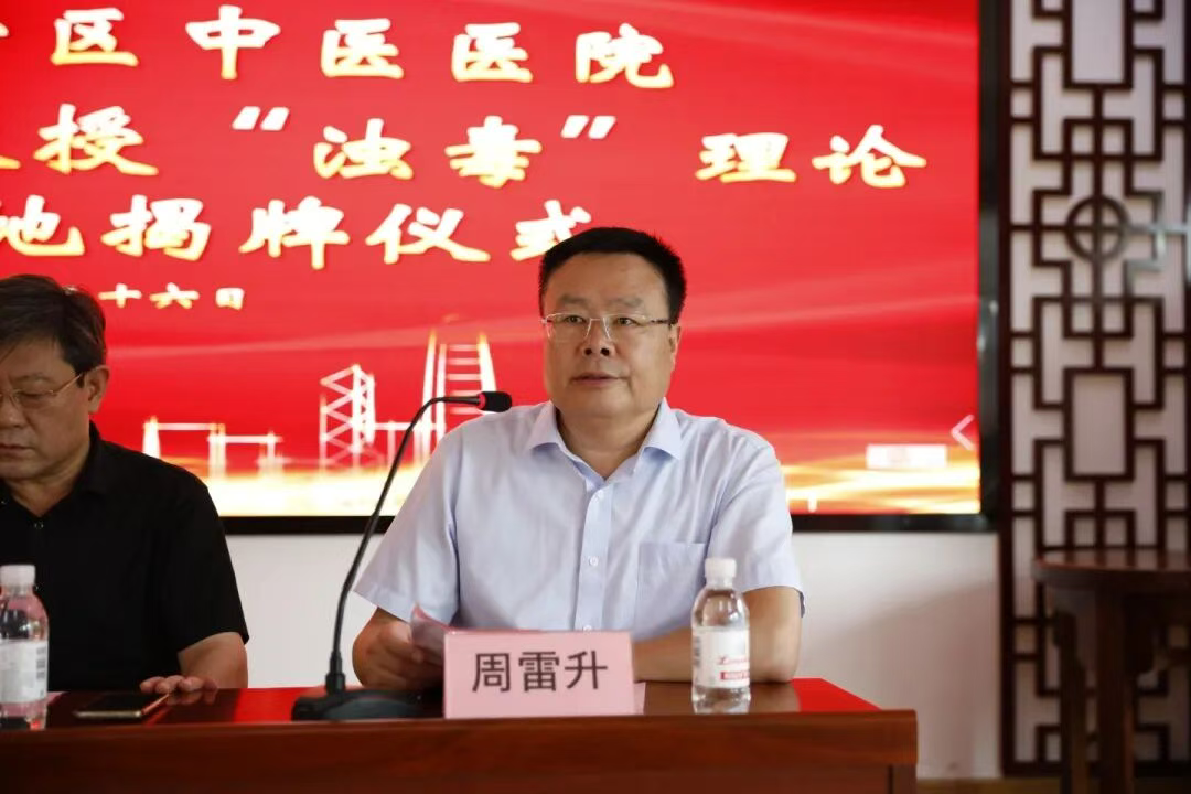国医大师李佃贵教授同新区卫健局二级调研员刘守田共同为李佃贵教授“浊毒”理论临床研究基地揭牌。