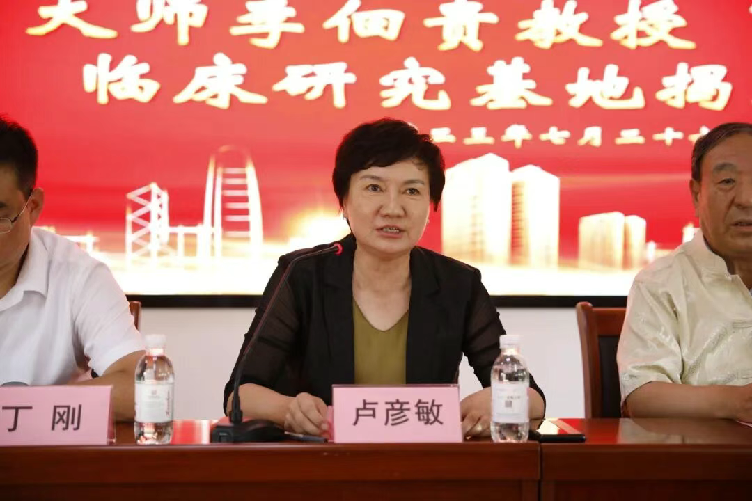 仪式上,卢彦敏书记代表医院致辞,她表示,国医大师李佃贵教授“浊毒”理论临床研究基地的落户,促进了中医药传承创新,是医院高质量发展的新契机。医院要打造一流的“浊毒”理论临床研究基地,将李教授的学术思想、临床经验和品德风范发扬光大,通过跟师学习、学术传承、医教研指导等多种形式,不断提升医院脾胃病领域的诊疗水平,推动医院中医药事业发展迈上新台阶,进而提升西海岸新区中医药发展水平,振兴中医药事业,为增进人民群众健康福祉做出贡献!