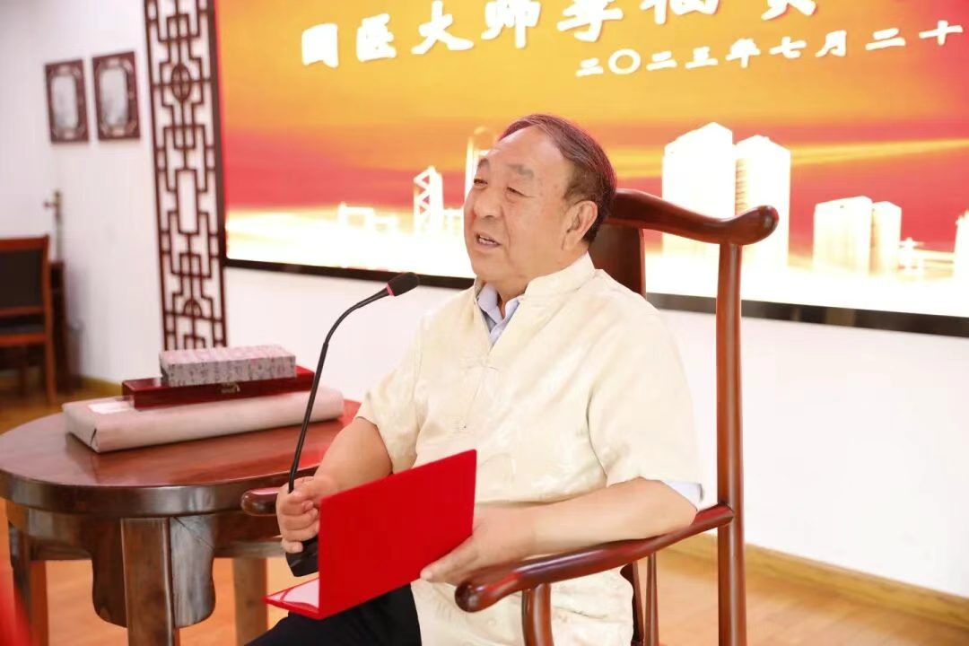 “医道大矣哉,从师而求传道授业,实乃大医精诚之本。今有弟子愿拜师于先生门下,尊师重教,勤勉求学,谨遵师讯......”在三位弟子的拜师宣誓声中,新区中医医院传承弟子康复科主任侯可强、肝胆病科主任焦克德、治未病科主任张永雷拜入国医大师李佃贵教授门下。